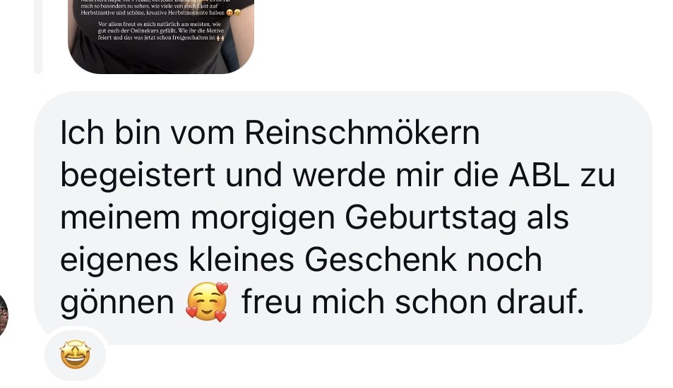 „Ich bin begeistert. Dank dieser tollen Anleitung, finde ich jedes Motiv einfach nur wow. Es macht jedes Mal mega Spaß.“