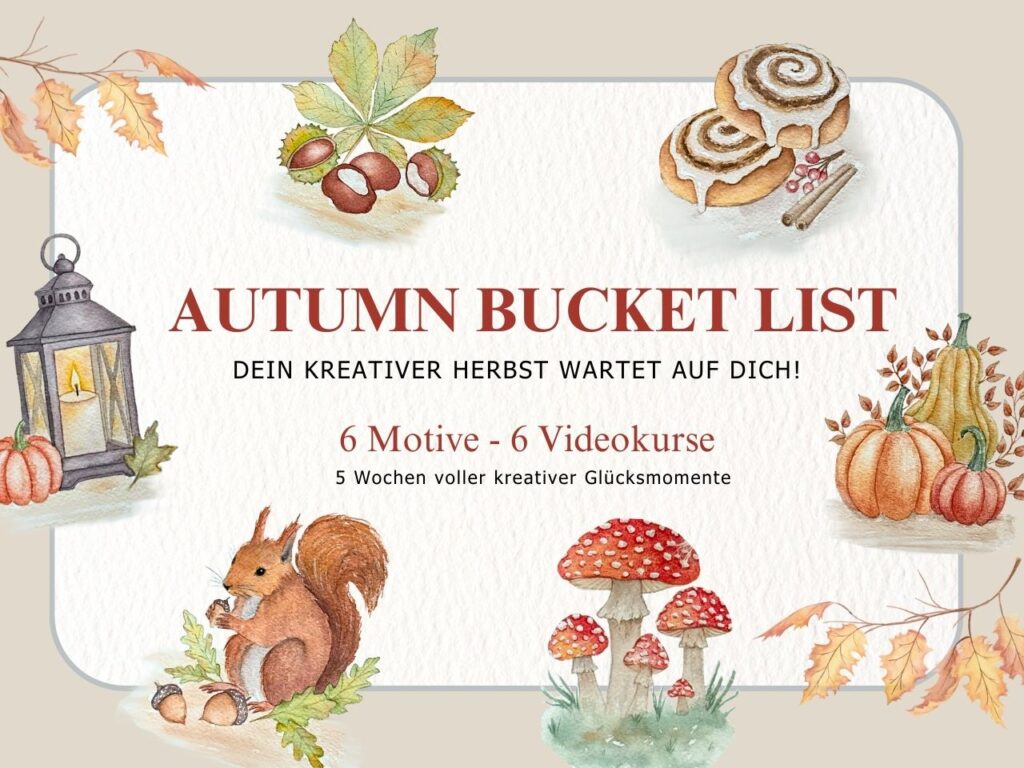 Mit der Autumn Bucket List hast Du einen durchdachten Onlinekurs mit zusammenhängenden Motiven, alles an einem Ort, klar strukturiert, immer zugänglich und auch perfekt auf Anfänger:innen  abgestimmt.